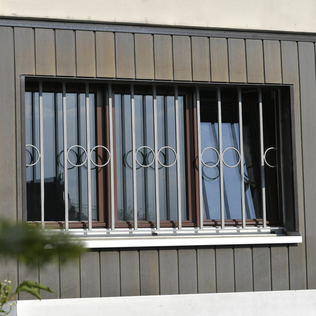 Réalisées en acier, en acier inoxydable, ou en acier au manganèse, nous vous proposons des grilles de défense agrémentées d’un vaste choix de motifs décoratifs. D’aspect fer forgé ancien, ou dans des lignes plus contemporaines, une grille ajoutera du cachet à votre construction, tout en permettant une aération sécurisée de vos locaux. Nous vous garantissons une fixation résistante, grâce à la technique de scellement « au mortier chimique ». Nos grilles sont traitées au primer, ou encore livrées dans une peinture de finition, à la teinte RAL de votre choix.